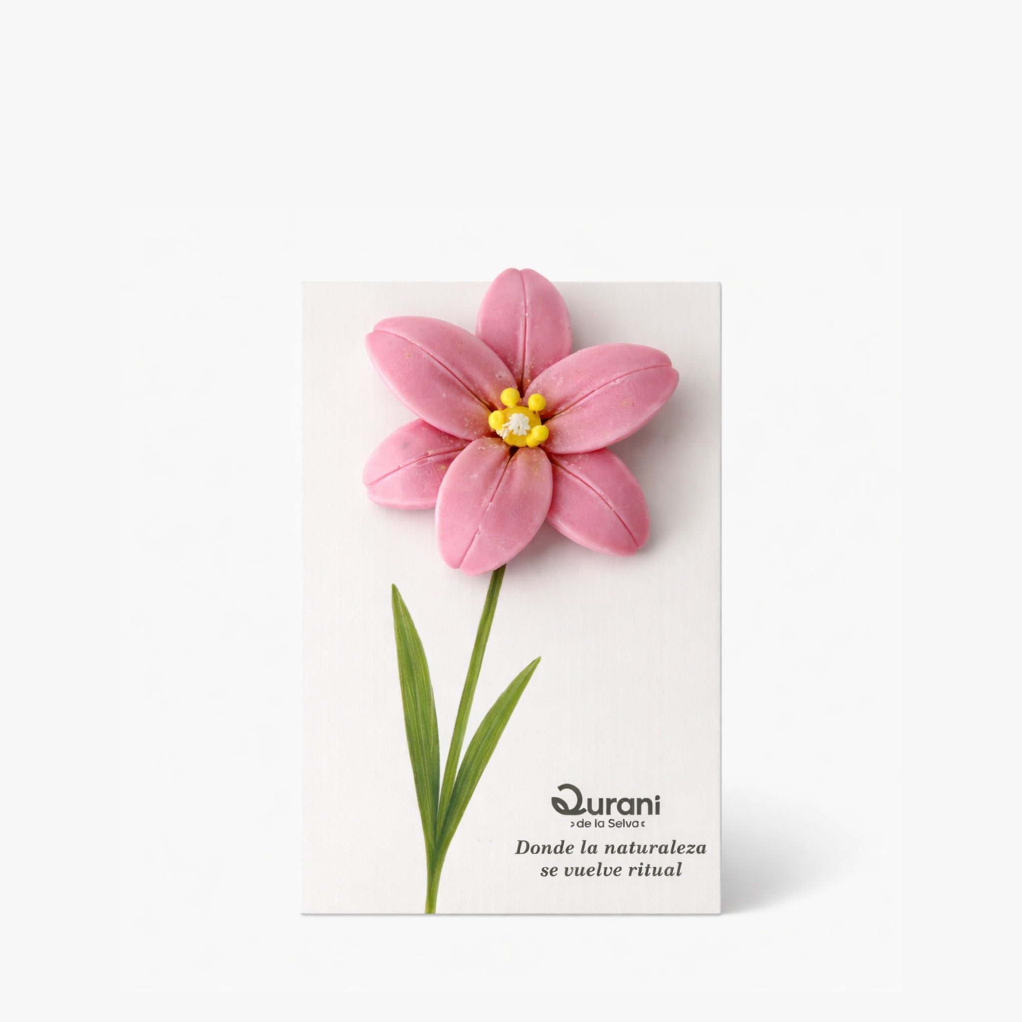 Vela artesanal elaborada a mano con cera vegetal natural, presentada sobre una tarjeta ilustrada lista para regalar. Sin necesidad de envolver, llega lista para sorprender.